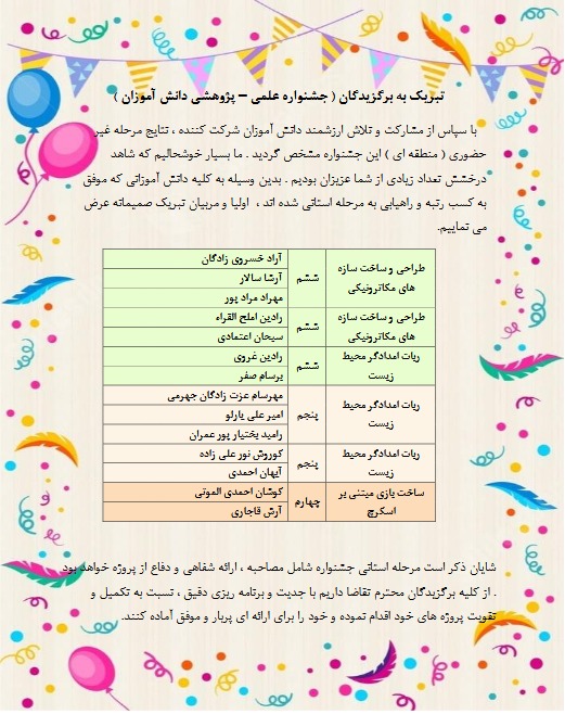 برگزیدگان جشنواره علمی _ پژوهشی دانش آموزی