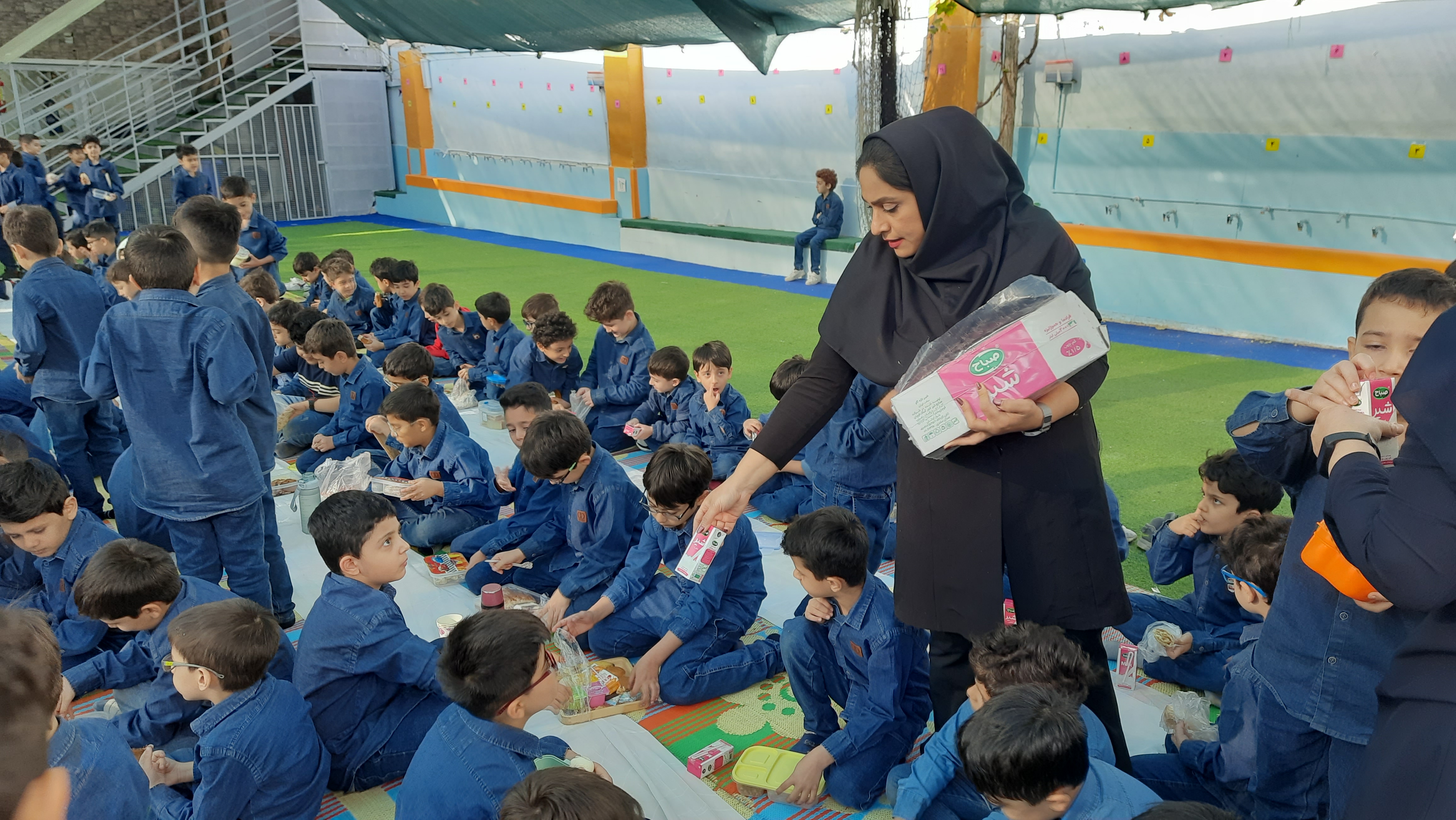 حیاط مدرسه صحنهی گردهمایی گرم و صمیمی از دانشآموزان، معلّمان و مسئولین مدرسه بود تا با هم صبحانهی سالم را سرود. با برنامهریزی و همت مسئولان مدرسه شیر پاکتی تهیه شد که بههمراه خوارکی های سالم خود میل نمایند. این برنامه تنها یک وعدهی غذایی نبود، بلکه فرصتی بود برای تقویت روحیهی همبستگی، آشنایی با فرهنگ تغذیهی سالم و ایجاد فضایی شاد و دوستانه در میان دانشآموزان با صدای خندههای رنگارنگ کودکان، هر لقمه از این صبحانه، نهتنها انرژی بدن، بلکه گرمای دوستی و همراهی را هم در دلها جای داد.