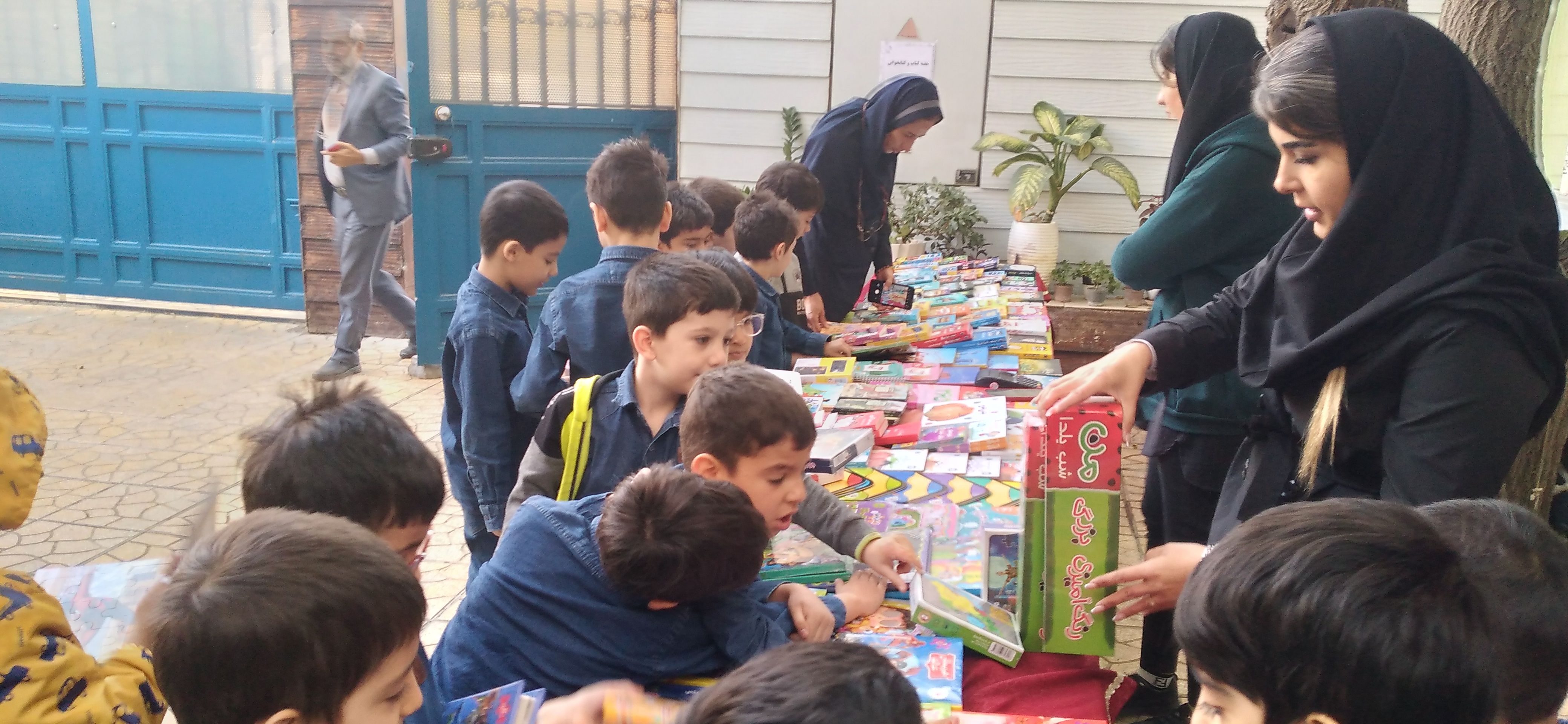 به مناسبت فرارسیدن هفته کتاب و کتابخوانی، نمایشگاهی با حال و هوایی ویژه در فضای باز حیاط مدرسه برپا شد. در این نمایشگاه، کتابهای رنگارنگ بر روی میزهایی مرتب چیده شده بودند تا دانشآموزان بتوانند به راحتی در میان آنها بگردند و از لمس کردن و ورق زدن صفحات لذت ببرند.