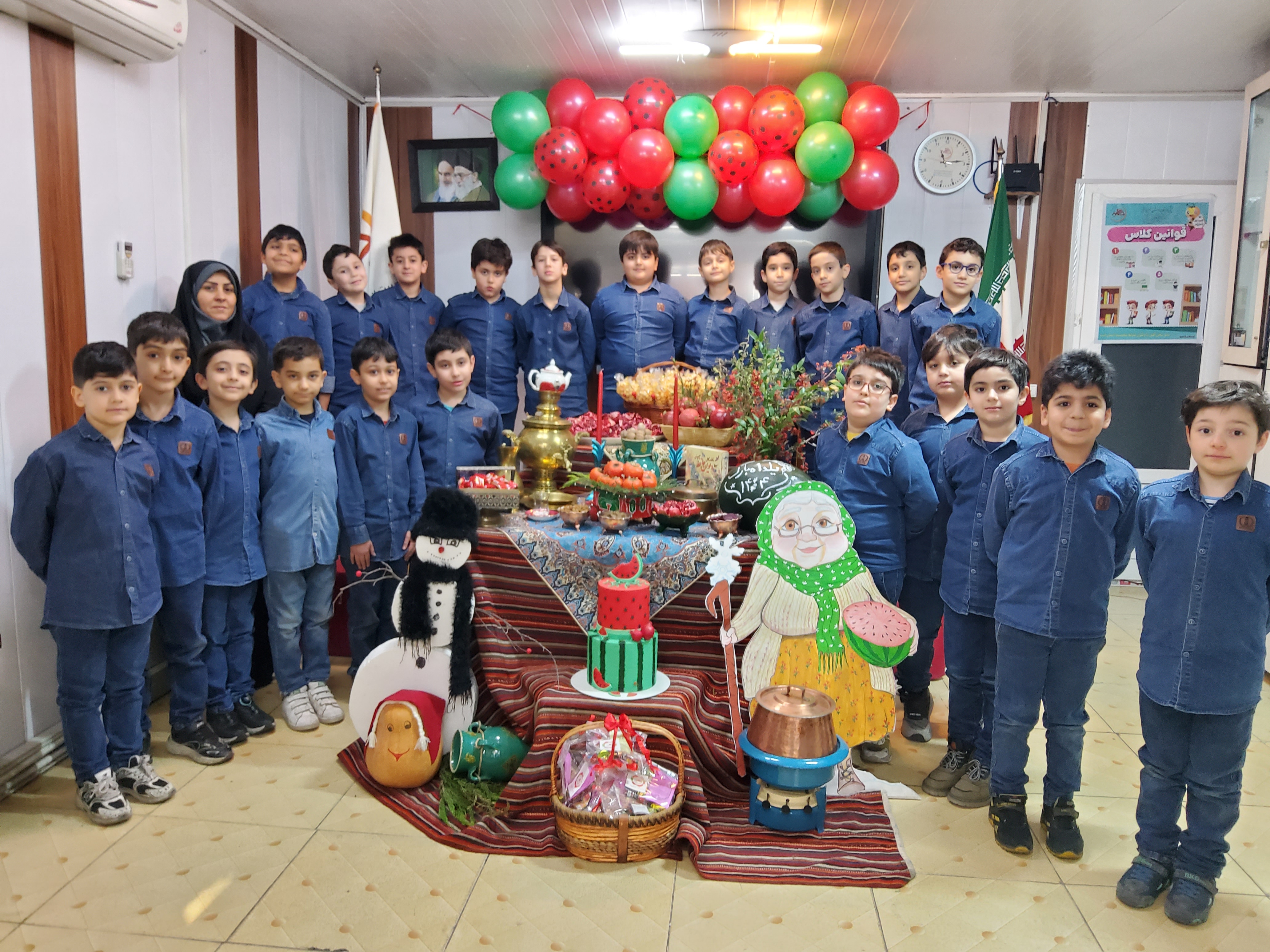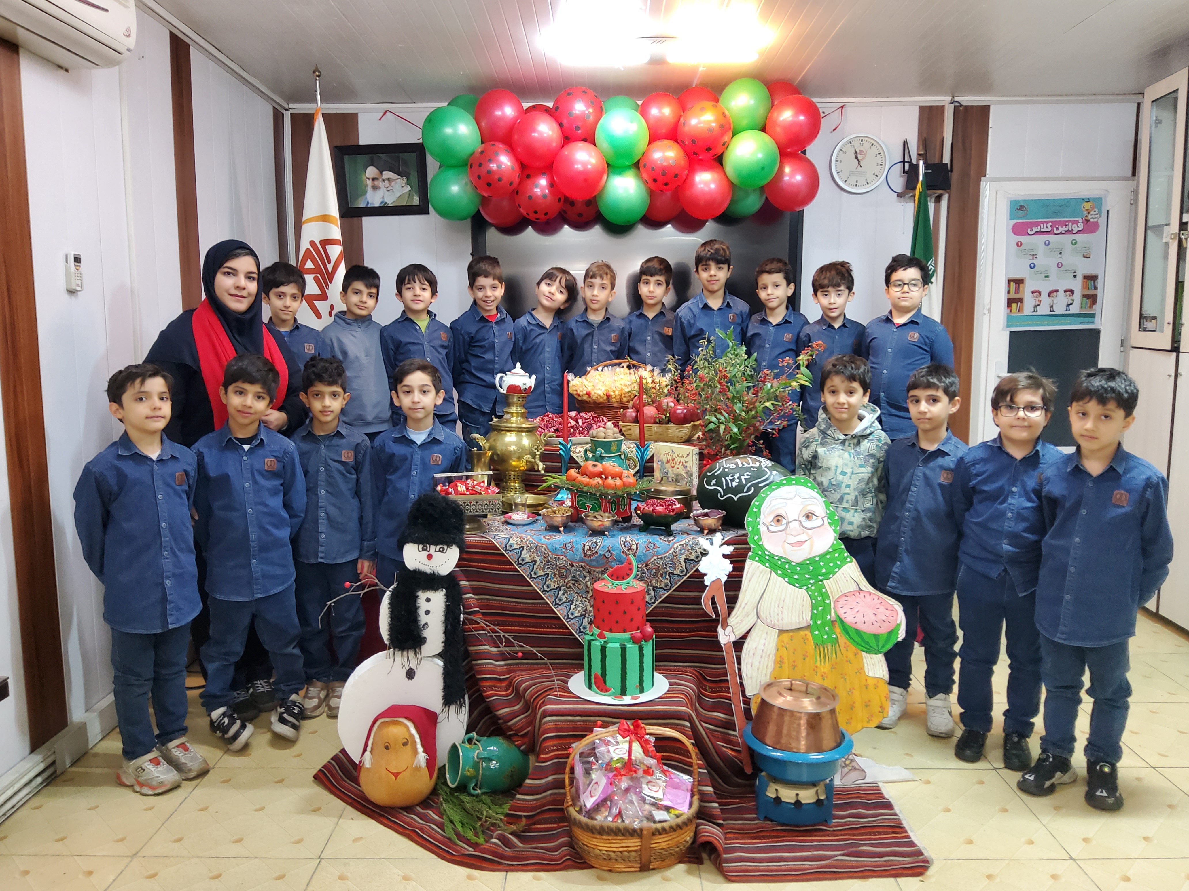با برپایی سفرهای رنگین از مهر و همدلی، کلاسها را با عطر انار، هندوانه و آجیل پر کردیم و در کنار یکدیگر، گرمای فصل مهربانی را احساس نمودیم.